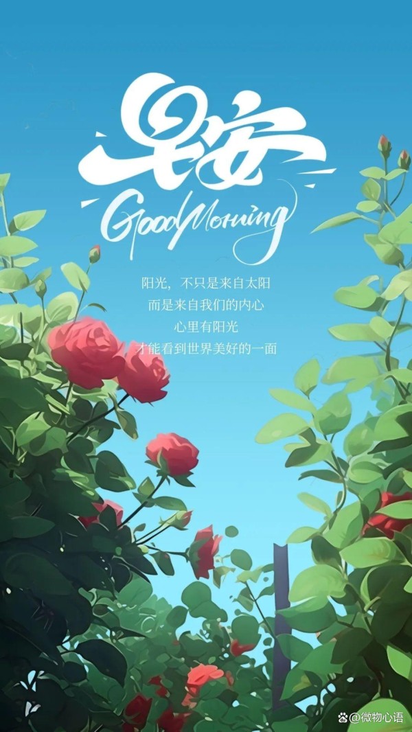在这个新的一天开始之际,我想对你说一声早安。希望你能从睡梦中醒来,迎接阳光的洗礼,感受到新的一天带给你的激情和力量。无论外面的世界是如此喧闹还是平静,都请你保持一颗平静的心,把握每一个瞬间的幸福和快乐。
