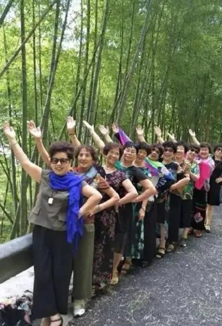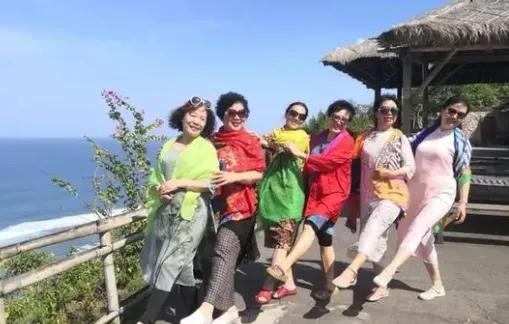 1、穿着耀眼:小花帽,大红袄,背包里装着充电宝,纱巾青绿红蓝紫,墨镜在比谁的好,站成一排来一张,动作张扬真是宝。