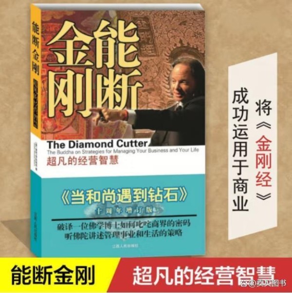 Cutter》十周年增订版,台湾版译为《当和尚遇到钻石》。作者麦克·罗奇在自己的职业生涯和宗教修行上找到了一个近乎完美的关键词——钻石(金刚石),在娓娓道来钻石的切割、加工、交易的过程以及自己在这个行业中摸爬滚打故事的同时,解读《金刚经》的精髓所在和这本经书在经商中的运用方法(具体作者列有46个“商业问题”和“金刚解药”)。在这里钻石被赋予了深刻的意味:成功的商人应当像钻石——坚实稳固、无坚不摧却又清澈透明。本书作为十周年增订版,加入了“能断金刚者的成功故事”这一新章节,作者回顾了《能断金刚》出版十周年所取得的成绩,选取了14位不同国家和地区的普通人通过阅读《能断金刚》并运用其理念来实现其财富和生活成功的实例。