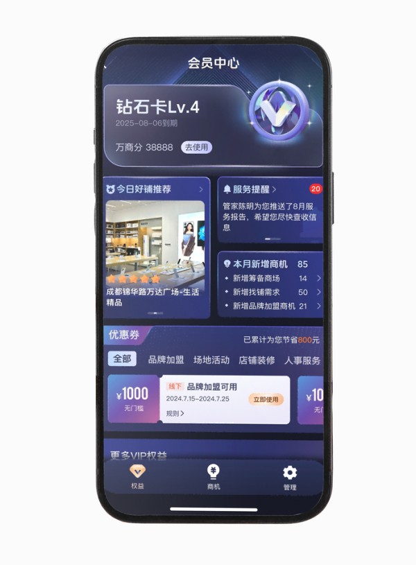 一个以AI数据洞察为纽带、以增长为目标的商业新纪元正在开启。人人都在提数据共享、生态协同并希望做成行业标杆,现在比拼的是速度、转型的执行力和品牌的认可度。2025年,万达智慧商业平台将推出“品牌大会员系统”,继续坚定打通租赁、经营、拓店全链路,通过打造实体商业数智化转型的“基础设施”。