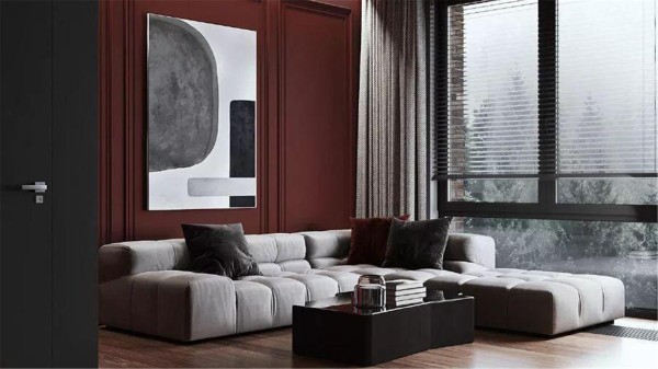 第三种我比较喜欢的配色是砖红色配黑色,红配黑,其实是一个比较经典的搭配了。但是如果红色太红会让人焦虑,黑太黑的话会让人很压抑,所以我们在这个颜色一定要选择好,砖红是一个很不错的选择。因为砖红它的明度比较低它又很有质,但黑色一定不要选择纯黑色。可以选择黑灰色或者是带一些大理石纹路的黑色,这样的话整体搭配起来会更有感觉更有质感。