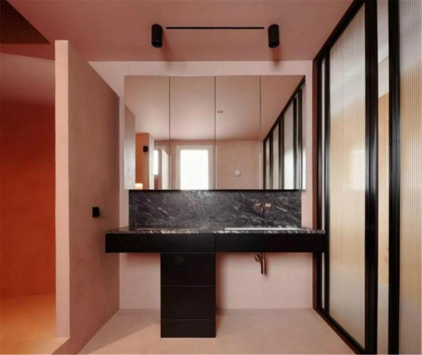 第七种配色是橡皮粉配黑色,我们前面说了,太粉的粉会有一种不高级的感觉。所以很多追求质感热爱家居的人士都不会选择粉色。但是,橡皮粉可以选择,一是它的饱和度很低,其次,它如果搭配黑色和其他的一些工业风的元素,它会变得又甜又酷。这样搭配粉色的工业风,就和其他的工业风有一点点不同了。