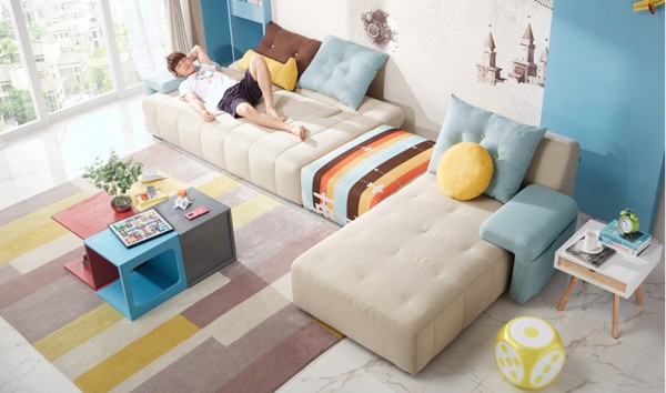 △俄罗斯方块概念的沙发,倍增客厅趣味。