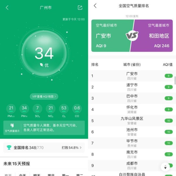 墨迹天气空气质量功能实时更新 AQI 指数,深度解析PM2.5、PM10等六项污染物浓度变化,给出科学合理的出行提醒。结合“空气”AI雷达地图,还可查看未来24小时全国空气质量情况,帮助用户准确把握空气质量趋势,合理安排开窗通风与户外活动。