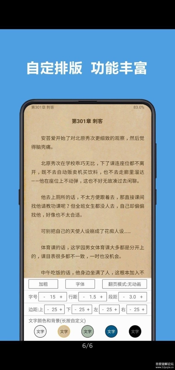 阅读点击界面可以调整页面样式、字体大小等等,都是一些很常规的功能,就不多说了。喜欢的小伙伴可以下载一下!