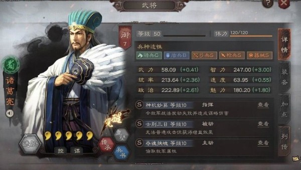 诸葛亮为副将,搭配战法竭力左谋与刮骨疗毒。