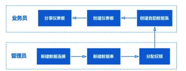 此外,FineBI在数据工作流程方面较Tableau分工更为精细,将数据准备阶段(包括数据建模)的工作交由IT管理员完成,业务人员/数据分析师在分配到管理员的数据权限之后即可开始进行自由的可视化探索分析。