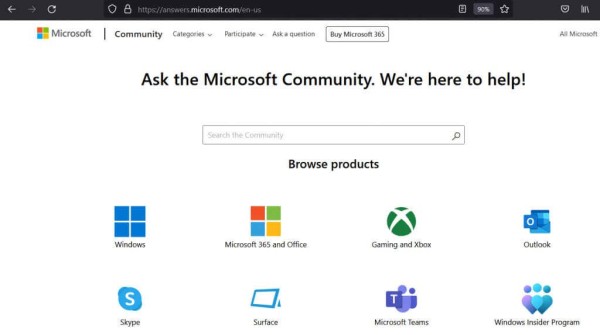 当您在“获取帮助”应用程序中选择“与(Get Help)人(Person)交谈”选项时, “询问(Ask)社区”是您将获得的选项之一。如果您遇到复杂的Windows计算机问题,这是一个很好的选择。单击(Click)询问(Ask)社区选项,将弹出一个Microsoft支持网站,其中包含社区部分供您使用 。(Microsoft Support)
