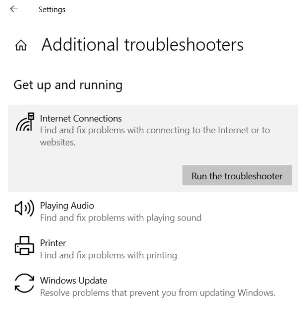 Windows 将推荐您可能要运行的疑难解答程序。但是,如果您遇到某个问题,比如说您的 Wi-Fi 连接,请转到其他(Additional) 疑难解答(Troubleshooters)并找到Internet 连接(Connections)选项。然后,运行疑难解答并等待结果。
