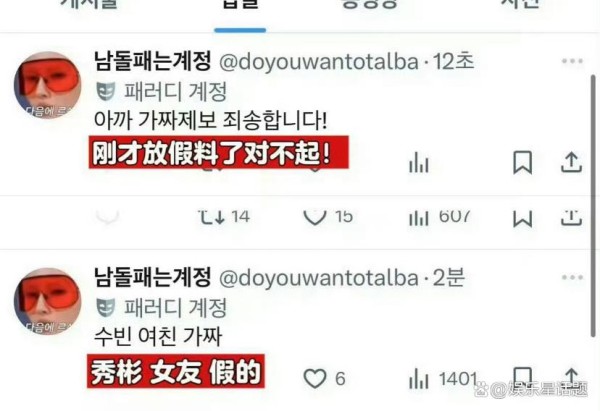 就在绯闻闹得沸沸扬扬之际,原爆料人突然澄清表示所有内容均为假料,承认过度解读了正常社交互动。回顾崔秀彬的绯闻史,这并非首次——早在2023年担任《音乐银行》MC期间,他就因与女搭档Arin的亲密互动被韩国网友指责,当时双方均未正面回应,但合作结束后传闻自然平息。2024年初,还有媒体误报他与同台主持人李彩玟的“炸猪排CP”绯闻,最终被证实只是节目效果。这些案例都表明,偶像的正常社交极易被误解为恋情,而崔秀彬团队似乎更倾向于用时间而非声明来澄清谣言。