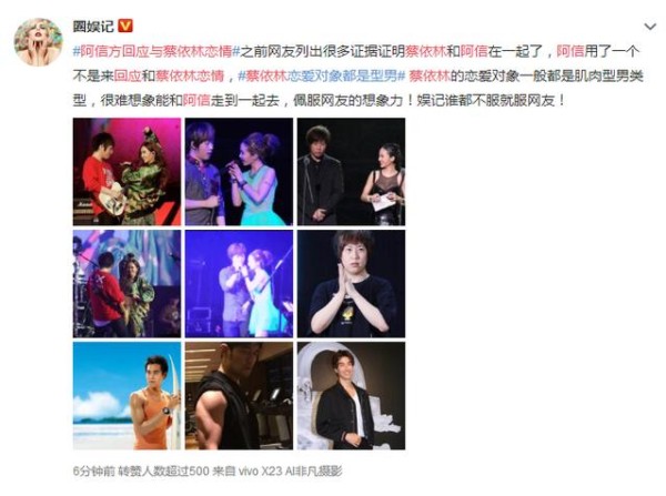 阿信蔡依林传绯闻,五迷:不管真的假的,老公终于热搜了啊啊啊!
