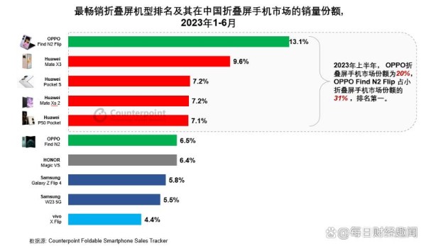 (上一代OPPO Find N2 Flip是今年上半年国内最畅销的折叠屏手机)