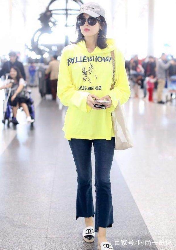 古力娜扎这几次来机场的打扮都挺有个性的,上次她就穿着一双很特别的鞋子来,因为从前面看就是普通的单鞋,但后面一看就是拖鞋,她这鞋子配喇叭牛仔裤穿还挺洋气的。