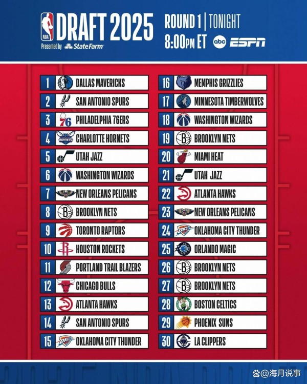 2025年NBA选秀大会实时数据(杨瀚森)前10顺位出炉