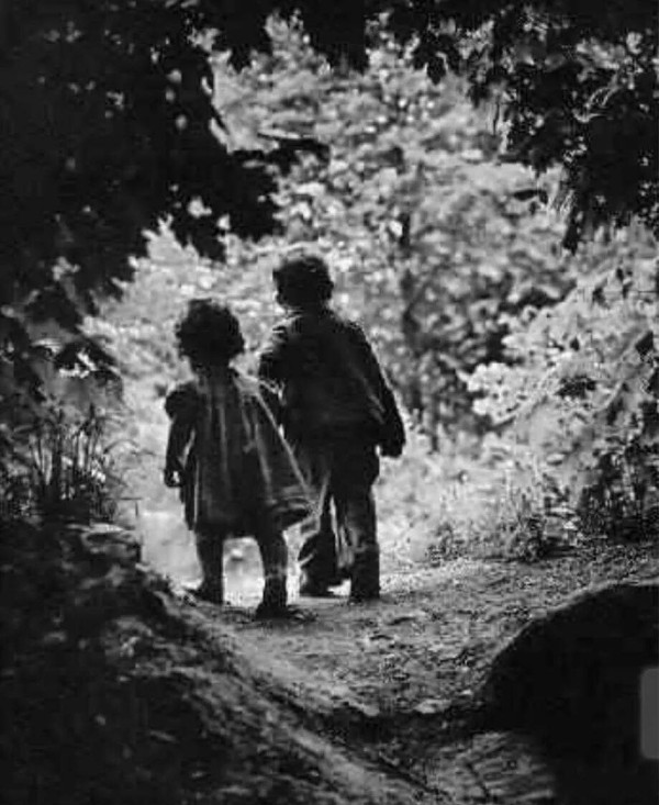 转瞬即逝的爱情和对大自然的诗意描绘是戴留斯音乐作品中的主旋律,这张日本LP的命名就是“自然与爱的音乐”(上图),主要收有戴留斯的歌剧间奏曲和交响音诗,其中最著名的是间奏曲《走向天国花园》和三首交响音诗。《走向天国花园》是戴留斯歌剧《乡村的罗密欧与朱丽叶》终场第六场之前的间奏曲,作于1899年到1901年,作曲家选择了与瓦格纳《特里斯坦与伊索尔德》比较接近的故事,但是又与瓦格纳不同——一是戴留斯使用的管弦乐队比瓦格纳的还要庞大;二是戴留斯的爱情主角萨莉和弗莱里不是贵族而是乡村平民;三是当主角受到父辈宿怨的冲击之后,他们的回应是希望不要长大,回到孩提时代。的确,这首间奏曲就像一首孩提时代的歌谣,描述这对情侣在一种具有告别意味的梦幻中体验童年生活、走向天国花园。这种梦幻表现是从渺渺云端飘逸而来的弦乐,淡淡的忧郁中渗透着一种葡萄酒酿造的甜美,弥漫在大自然清新的空气中……尾声部分在竖琴伴随下单簧管进入,使作品在缥缈中增加了一份苍茫感,把人们的心带到一个遥不可知却能看到山间小屋、闻到鸟语花香的乐园。这让我想起曾经看到过的一幅摄影作品《走向天堂花园》(下图),二十世纪摄影大师尤金·史密斯的这张作品,又名“乐园之路”——画面让两个孩子自然地填充在“乐园”的空洞中,黑暗与光明交界处的树叶,叶影斑驳,清晰而真实。这种爱与自然的交响,要是戴留斯看到,或许会用它来作为《乡村的罗密欧与朱丽叶》的演出海报吧!