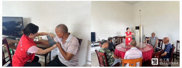 本节小组活动开始,社工为每位老人测量血压,细心询问身体状况,对异常血压值重点叮嘱用药和饮食注意事项。针对李爷爷自行停药的情况,社工强调必须遵医嘱用药。接着开展健康饮食分享,讲解“三高”、骨质疏松等防治知识,指导合理膳食和适量运动,提醒血压异常者及时就医。