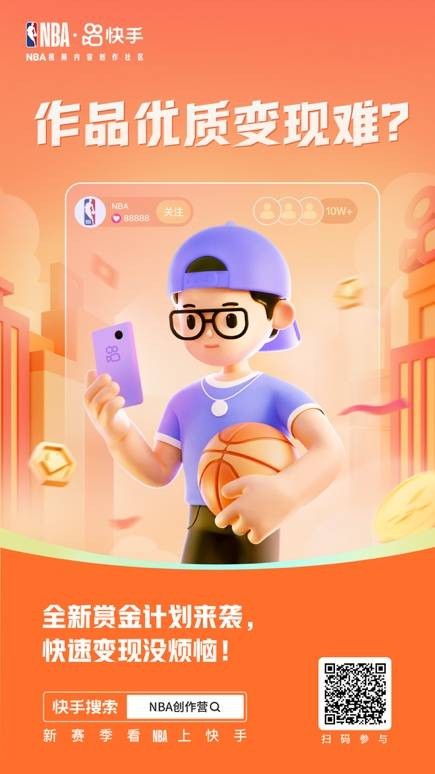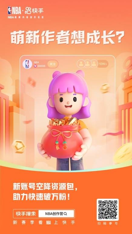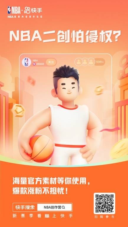 作为NBA中国首个内容二创媒体合作伙伴,快手平台目前已积累了丰富的NBA二创内容,实现了对NBA赛事热度的持续扩散。随着2022-2023赛季的开启,为了让更多的篮球创作者们表达并分享对篮球的热爱,快手在提供NBA海量赛事版权素材的同时,也面向新作者、头部创作者以及全篮球领域创作者制定了不同扶持方案,继续扩充平台优质篮球内容创作者力量。