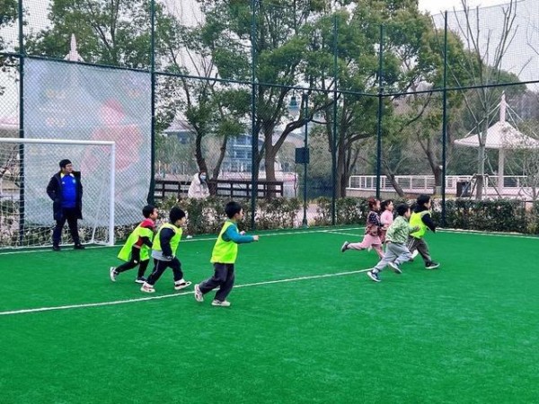 当所有小朋友手拉手组成"铜墙铁壁",防守的不只是球门,更是团队的荣誉感。两位小朋友需要通过带球射门,拿到比赛的胜利,谁先进球团队就获得加分。此起彼伏的"守住!守住!"呐喊声里,集体精神悄然萌芽。