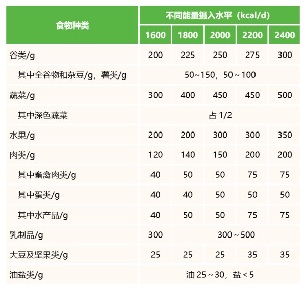 表1 平衡膳食宝塔的各类食物量