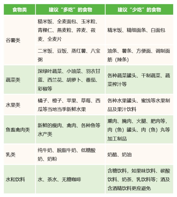 表4 建议“多吃”和“少吃”的食物举例