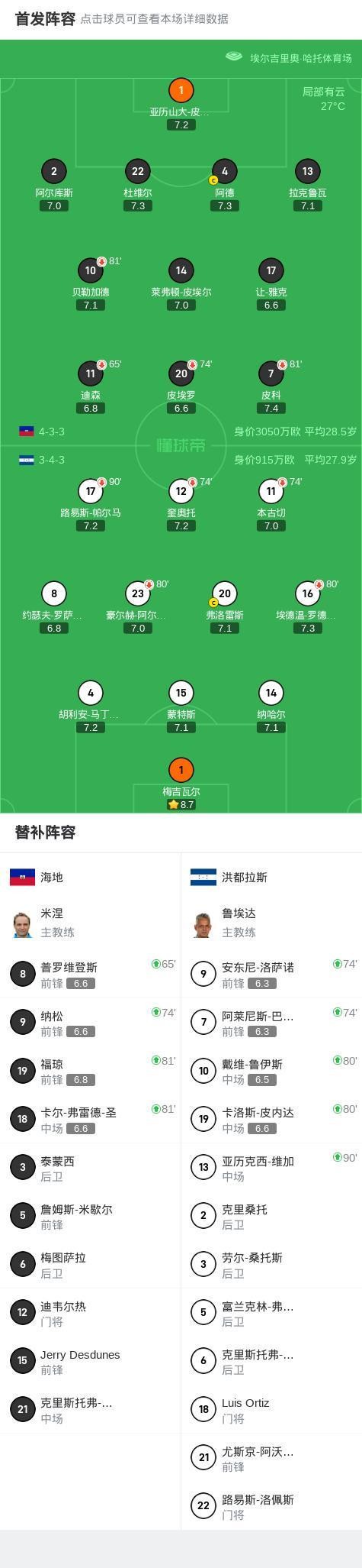 北京时间9月6日世界杯中北美洲区预选赛 第三阶段,海地对阵洪都拉斯。最终比分海地 0-0 洪都拉斯。