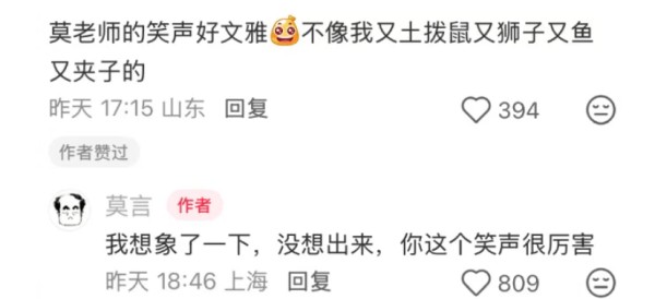 在评论区网友和莫言各种玩梗莫言以轻松幽默的话语回复欢乐不断