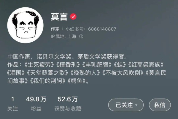 作家莫言入驻小红书一天吸粉60万!全网笑晕在评论区