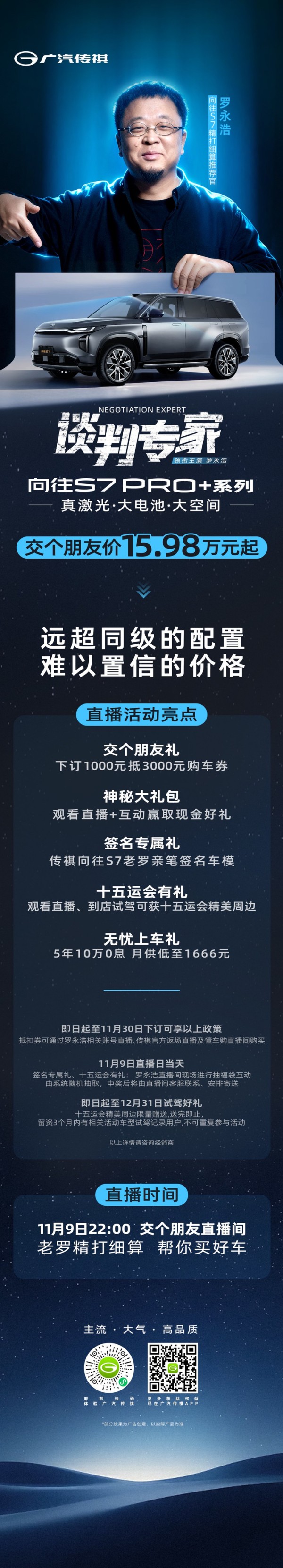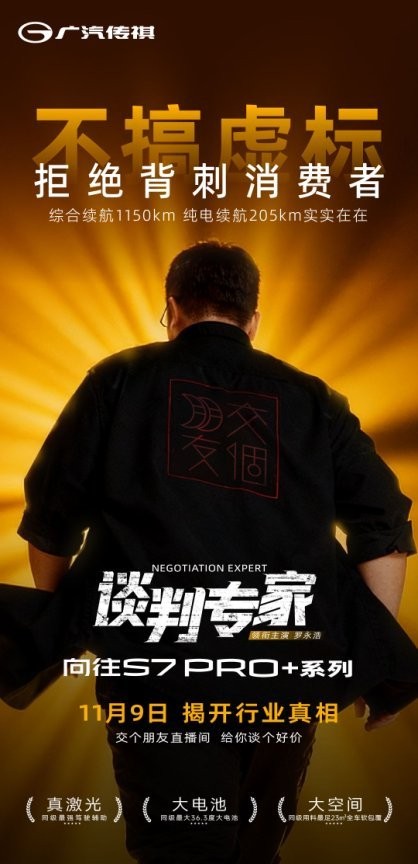 罗永浩直播带货传祺S7 Pro+,17.98万起售