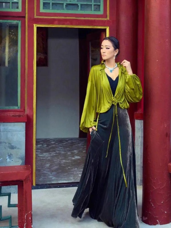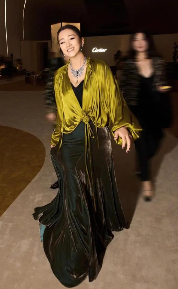 我一刷手机就看到巩俐那组新大片,整个人直接被吸引住了。她穿的那件绿绸衬衫,在灯光下泛着柔润光泽,像春天新发的嫩叶一样清新。黑丝绒长裙轻轻摆动,仿佛能听到布料摩擦的细微声响。她随便一个抬手或微笑,都透出那种不费力的高级感,简直把优雅刻进了骨子里。