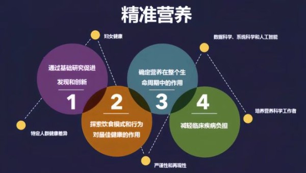 2016年美国营养研究路线图发布之后,美国国立卫生研究院(National Institutes of Health,NIH)成立了营养研究工作小组(Nutrition Research Task Force,NRTF),负责制定未来十年的NIH营养研究战略计划。2018年11月,NIH营养研究战略性计划(草案)发布,征求公众意见。美国当地时间2020年5月27日,《美国国立卫生研究院2020-2030年营养研究战略计划》(2020–2030 Strategic Plan for NIH Nutrition Research)正式出台。NIH希望通过这一战略性的科学指导方针,从根本上改变营养科学研究。该计划设置了四个战略目标及其分目标,并正式提出了“精准营养”战略愿景。四个战略目标如下: