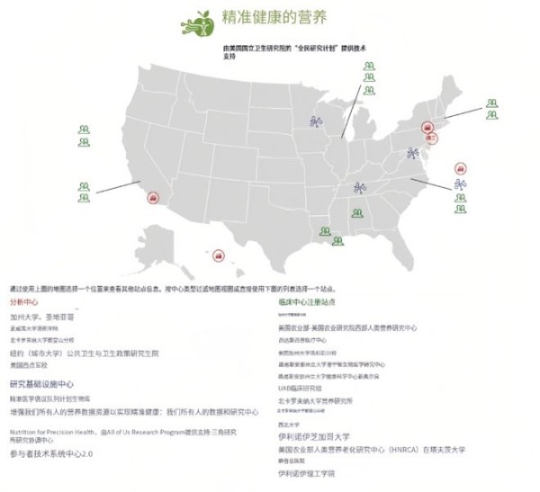 美国NIH“精准健康营养”(Nutrition for Precision Health)计划合作高校及机构