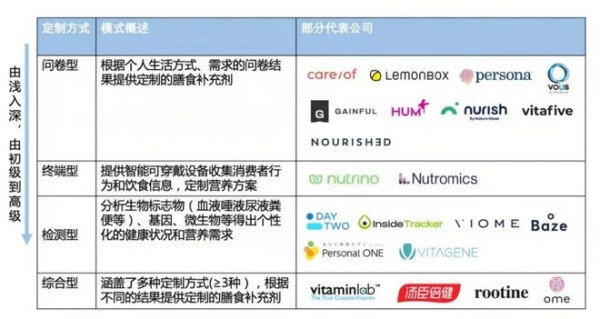 目前定制营养的基本流程是收集数据、分析数据、提供解决方案。对于消费者来说,不同方案的体验差异主要体现在于品牌的数据收集技术与能够提供的产品。智能设备可为定制营养提供更为客观准确的数据,如能够记录每日饮水量的智能水杯、记录每日运动量及心率的智能穿戴设备、记录体重、体脂化的智能体脂秤等。
