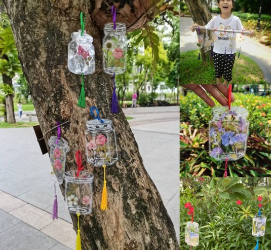 本次活动分为亲子趣味活动和探索自然两个环节。在亲子活动环节,通过“同手同脚”的趣味游戏,让家长和孩子们体验亲子间相互合作的乐趣,增进彼此的默契;在探索自然活动环节,家长和小朋友们开发想象力和创造力,给绵羊找“新衣服”,给蝴蝶换 “花衣裳”,仔细发现不一样的美,同时,大家还在工作人员的指导下,制作出了五彩缤纷的漂流瓶书签,挂在树上形成了一道美丽的风景线。