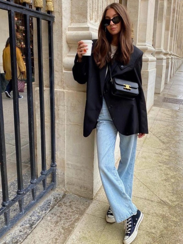 在这别具一格的风格中,我们追求的是那份随性的休闲与独特的造型魅力。正如西装与直筒牛仔裤的完美结合就是对这种风格的最佳诠释。它们共同演绎着一种既潇洒又不失型格的穿搭哲学。而脚上的匡威鞋,无疑是这组搭配的点睛之笔,它巧妙地将那份随性的态度推向了高潮,让我们在舒适与时尚之间找到了完美的平衡。