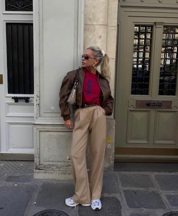 松紧结合的搭配是一种非常实用的穿搭技巧,尤其是在展现随性又有型的穿搭中更是运用广泛。