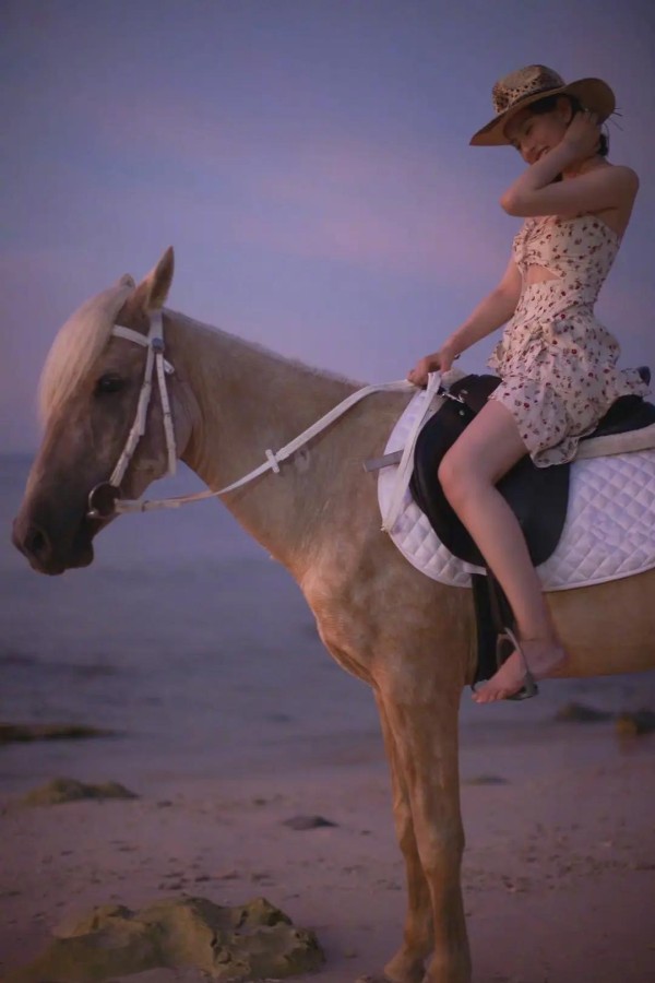 宋祖儿在海边拍大片,气质妩媚氛围感十足,除了因为她的摆拍动作很成功以外,还和她的表情管理有一定的关系,宋祖儿抬头挺胸坐在马背上,她用手上撑着马背,眼神显得有点空洞,脸部的表情拿捏得很好,营造出了一种楚楚可怜的意境,让人忍不住想要去保护她,宋祖儿在海边拍大片,光脚骑马英姿飒爽,表情管理我给满分。