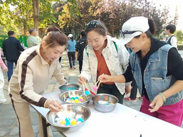 活动现场,设置了多项趣味活动。在乒乓球挑战项目中,参与者用筷子小心翼翼地夹起乒乓球传递,让居民们在轻松愉快的氛围中锻炼了手眼协调能力;蒙眼画脸项目,在队友的口头指导下,参与者蒙上眼睛,在画板上画出自己的脸或指定图案,考验了居民的团队协作与沟通能力。此外,现场还设置了不倒森林项目、趣味投掷等项目,让居民们在欢笑中体验到了信任与默契的重要性。
