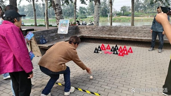 在木射区传统文化与趣味游戏的碰撞,最具特色的木射区成了“文化小课堂”。社工一边讲解红柱上“仁义礼智信”的含义,一边看着居民们滚动木球。每当有人击中红柱,周围便会响起阵阵喝彩。传统文化与趣味游戏的碰撞,让现场多了几分独特韵味,也让居民们在娱乐中感受到了中华文化的博大精深。