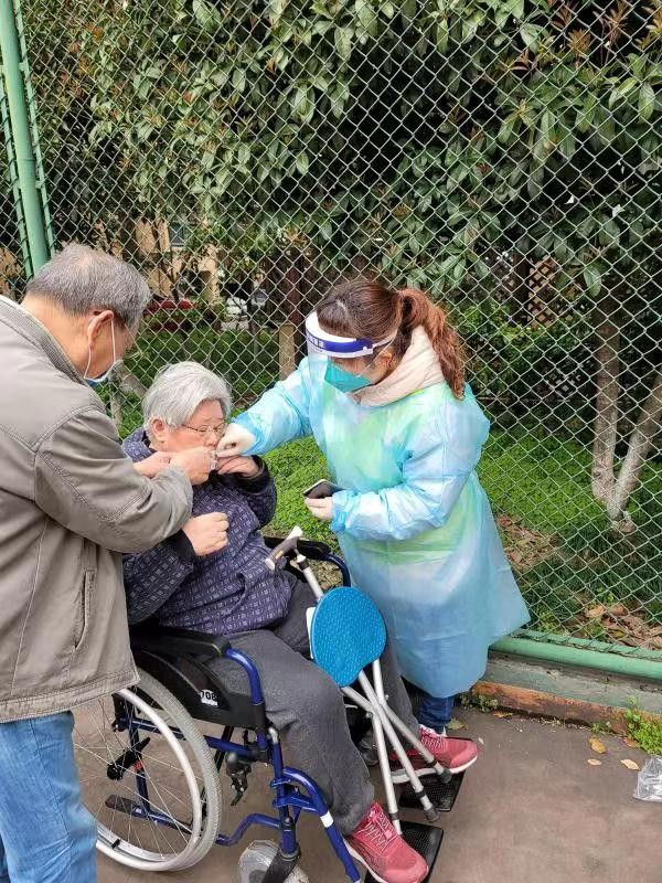 每天工作结束的时候,陈老师的防护镜已经模糊不清,里面布满了水雾,脸上留下深深的勒痕,腰酸背疼也已是常态,但是看到大家的微笑、赞许,听到社区居民关心关切的话语,她觉得浑身又充满了力量。