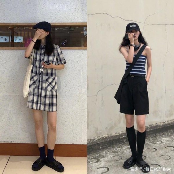 条纹以及格子元素都是突出休闲风尚必不可少的,横条纹修身打底衫既能彰显随性风采,又洋溢着休闲与性感风尚。搭配黑色百慕大短裤以及长筒袜,尽显身姿窈窕与美观。格纹衬衫连衣裙素雅质朴,搭配长筒袜,满是森系田园感。这样的look更适合选择宽大的帆布包进行结合,温婉惬意,充满恬静柔的格调。