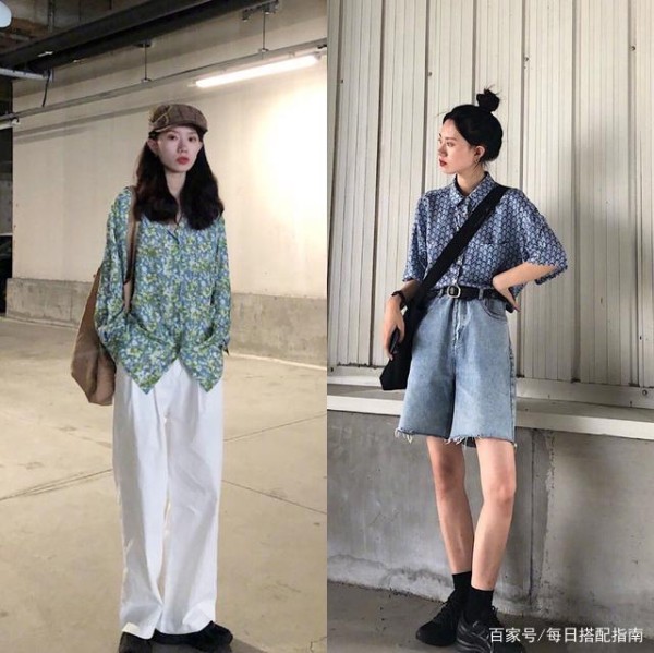 碎花衬衫给大家的笼统印象是清爽又唯美的,常见的穿法是将衣摆塞入长裤中,利落干练,又能突出身材之美。如果把衬衫全部放下来单穿,就会营造出别样的慵懒迷情风韵。下半身选择超短裤或者拖地裤与碎花衬衫的结合,都很恬静温柔。披肩发与此类型的look搭配,更加优雅轻熟,扎起丸子头,多了几分减龄感,更加洋气俏皮。