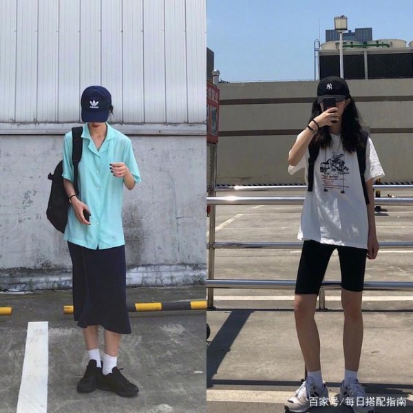 男友风版型的T恤衬衫或者是POLO衫等单品都非常适合凹出帅酷拉风的造型。下半身搭配的选择性就比较宽松,不管是半裙还是休闲裤都很适宜。半身裙能够给造型带来灵动气息,增加温柔之美,修身骑行裤则飒爽霸气,增加性感风韵,更突出身材纤美曲线。长筒袜与运动鞋结合休闲自在,背上双肩包就可以直接去度假啦,带上黑色系棒球帽,闲适朴素,街头酷帅小姐姐都爱这种chic。