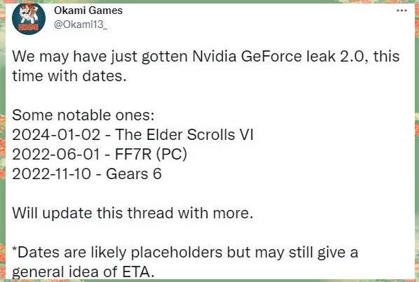 这份泄露的英伟达GeForce Now游戏名单所提供的发售时间,在一定程度上具有可信度。例如,卡普空似乎正在制作《生化危机4:重制版》,而《黑神话:悟空》此前已被曝光计划在2023年推出。同时,值得注意的是,《上古卷轴6》的发售时间预计不会早于《神鬼寓言4》。当然,Okami13也指出,这些游戏的发售日期可能仅为参考,某些可能为占位符。