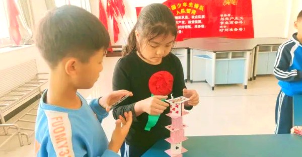在纸牌高楼挑战中,威海长峰小学的孩子们不仅展现出了非凡的创造力,更在构筑高楼的过程中彰显了坚韧不拔的毅力。他们灵活运用手中的扑克纸牌,精心构建出一座座既稳固又高耸的建筑,每一座都蕴含着匠心独运的设计,且稳固不倒。这一活动不仅锻炼了孩子们的动手实践能力,更进一步激发了他们的团队协作精神,让他们在解决问题的过程中充分体验到了成功的喜悦。