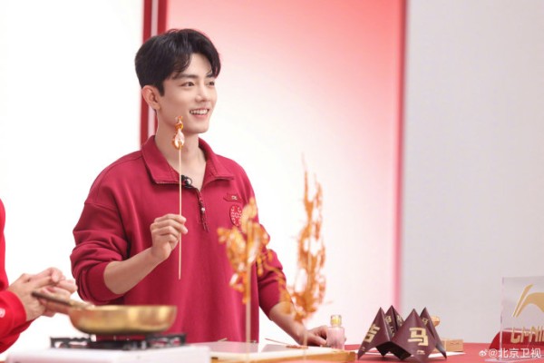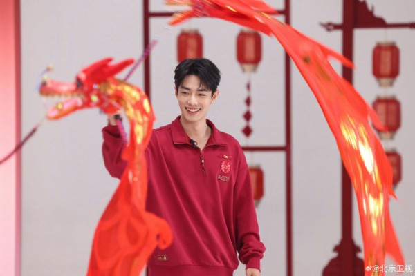 肖战红衣造型亮相北京卫视,舞龙糖画迎新春