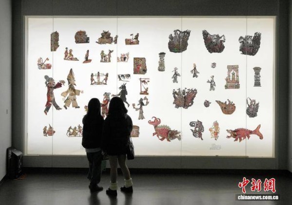 1月1日,成都博物馆前来参观的市民、游客络绎不绝,大家有序参观,在浓浓的文化氛围中度元旦假期。图为民众在成都博物馆参观《中国皮影木偶展》。中新社记者 安源 摄