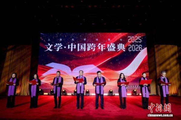 中新网北京1月2日电 (记者 应妮)2025年12月31日晚,2026“文学·中国”跨年盛典在北京市中国国际出版交流中心举办。这一由人民文学出版社首创的活动,已是第五年举办,“文学跨年”逐渐成为岁末年初一道独特的文化风景线。