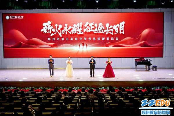 辞旧迎新启华章,师生同乐庆元旦。2025年12月31日下午,郑州市第五高级中学明珠艺术中心举行2026年元旦迎新联欢会。学校千余名师生、家长代表共赏文艺盛宴,共话美好未来。