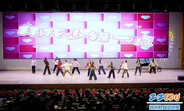 教师团队让晚会的“同乐”氛围更显浓厚。高一教师团队带来舞蹈《爱你》,灵动的舞姿、亲切的互动,传递出师者柔情;高三教师团队唱响《敬业阵线联盟》,激昂的旋律、真挚的情感,致敬了教育岗位的平凡与伟大,展现了教师的责任与担当。师生同台献艺、默契互动,每一个瞬间都定格成校园里最温暖的画面。