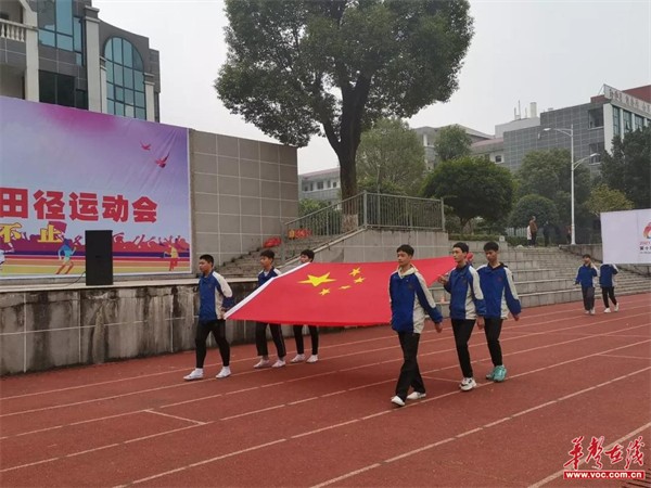 在庄严的国歌声中,举行了升旗仪式。廖贻良校长热情洋溢地致校运会开幕辞。他讲到:“学校体育作为素质教育的重要组成部分,对于强健我们的体魄,挺拔我们的精神,坚韧我们的意志,都将起到无可比拟的促进作用。本次运动会是对学校体育教学工作的一次大检阅,是同学们个性特长及运动风采的大比武,更是学校“激情与梦想”教育成果的大展示。我们坚信,运动会中,大家凭实力拼出来的顽强、自信、团结和友谊的胜利果实,必将无比甜蜜。让我们共同努力,把本次运动会办成一次安全、文明、精彩、圆满的体育盛会!”